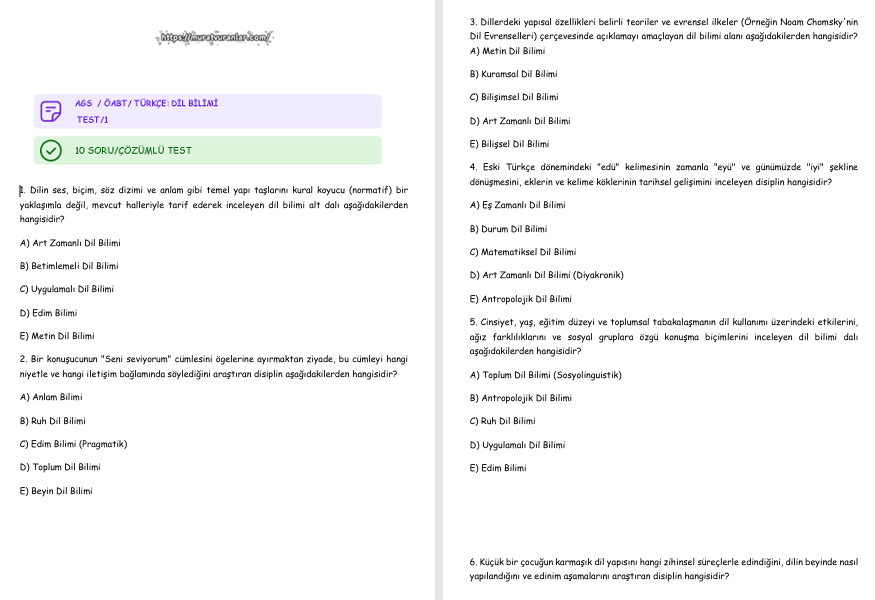 DİL BİLİMİ /10 SORU ÇÖZÜMLÜ