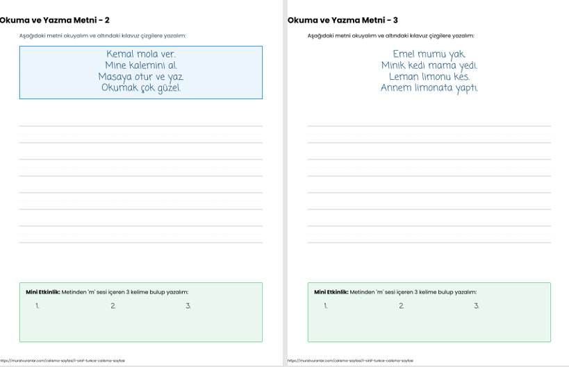 1. SINIF HARF ÇALIŞMALARI -M SESİ FASİKÜLÜ