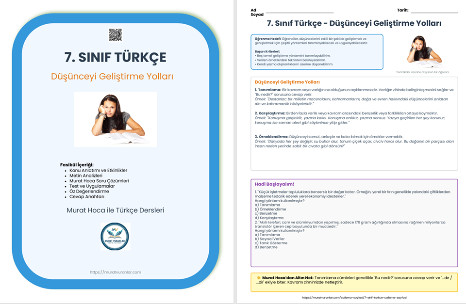 7. Sınıf Türkçe: Düşünceyi Geliştirme Yolları – Kapsamlı Çalışma Fasikülü Yayında!