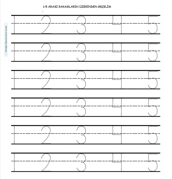 NOKTALI YAZILARIN ÜZERİNDEN GEÇME/1-5 SAYILAR