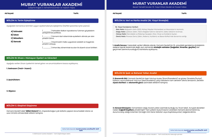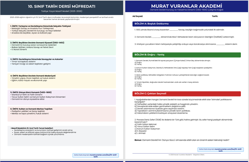 2025–2026 eğitim öğretim yılı 10. Sınıf Tarih dersi, Millî Eğitim Bakanlığı tarafından uygulanan Türkiye Yüzyılı Maarif Modeli doğrultusunda; kronolojik bütünlük, medeniyet perspektifi ve tarihsel analiz becerileri temel alınarak yapılandırılmıştır.