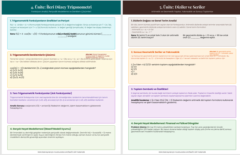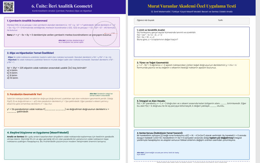2025–2026 eğitim öğretim yılı 12. Sınıf Matematik dersi, Millî Eğitim Bakanlığı tarafından uygulanan Türkiye Yüzyılı Maarif Modeli doğrultusunda; analiz, modelleme, ispat ve ileri düzey problem çözme becerilerini geliştirmeye yönelik yapılandırılmıştır.