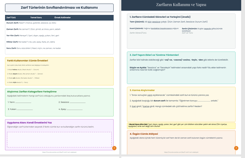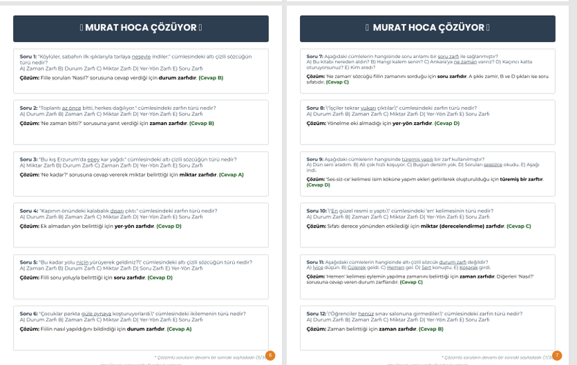 •Murat Hoca "Altın Notlar": Sınavlarda en çok karıştırılan noktaları, "can kurtaran" taktikler ve akılda kalıcı ipuçlarıyla (Sıfat-Zarf ayrımı gibi) netleştiriyoruz.