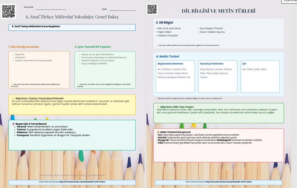 6.SINIF TÜRKÇE KONULARI /2025-2026
