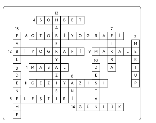 TÜRKÇE/BULMACA/METİN TÜRLERİ
