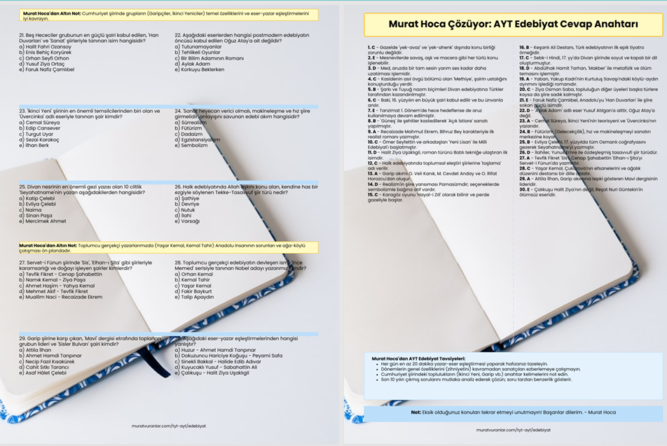 Murat Hoca ile AYT Edebiyat: 30 Soru, 30 Çözüm ve Altın Notlar!