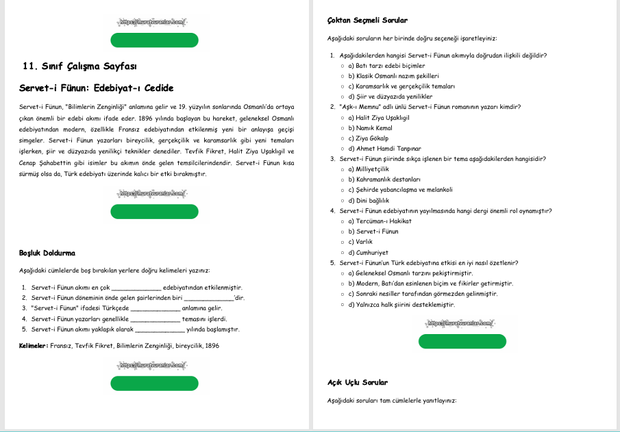 Serveti-i Fünun Dönemi Edebiyatı Çalışma Sayfası