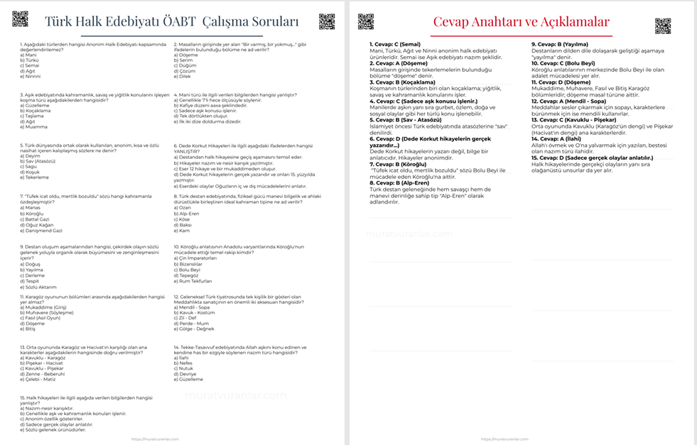 TÜRK DİLİ VE EDEBİYATI ÖĞRETMENLİĞİ ÖABT SORULARI (HALK EDEBİYATI 2)