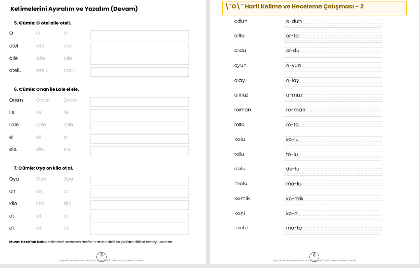 •Kelime Dağarcığı: "On", "Ot", "Okan", "Kilo", "Oda" gibi 1. grup ve 2. grup seslerini de içeren yeni kelime pratikleri.