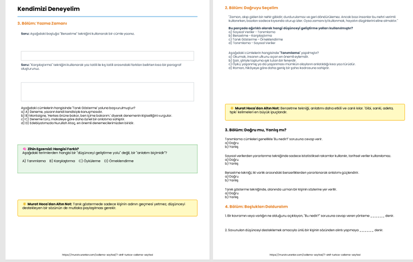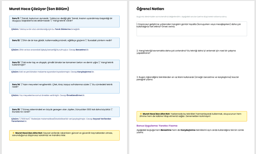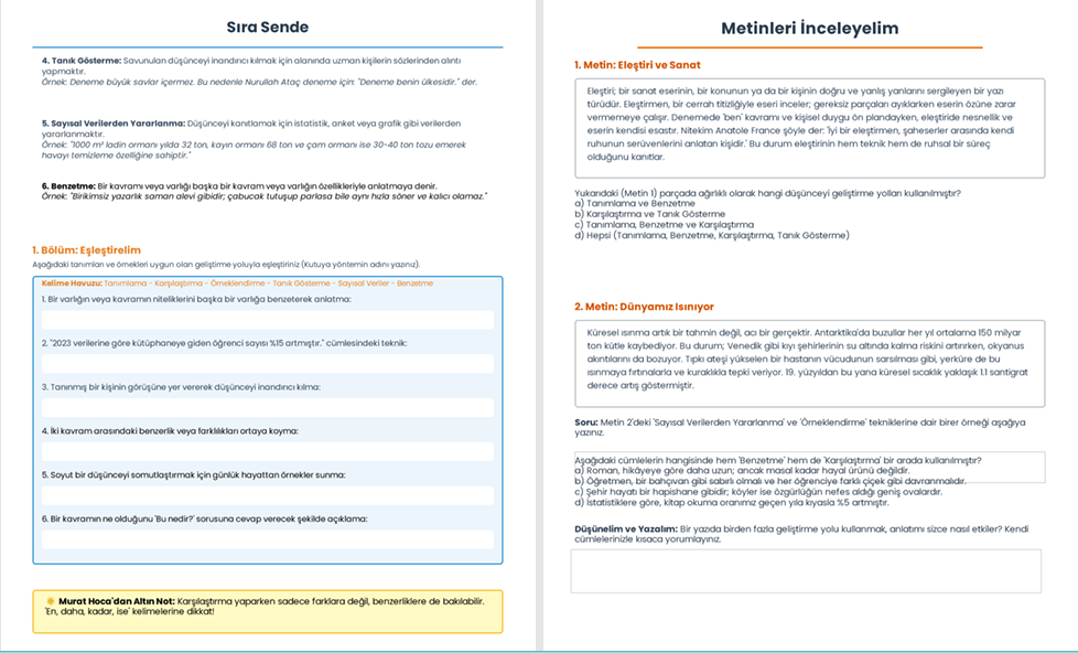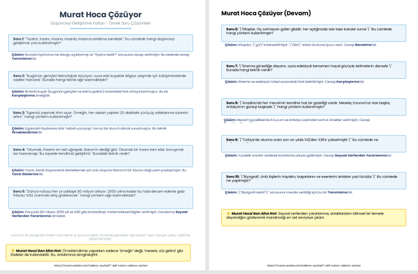 •🔍 Adım Adım Konu Anlatımı: Tanımlama, Karşılaştırma, Örneklendirme, Tanık Gösterme, Sayısal Veriler ve Benzetme tekniklerini, Murat Hoca’nın özel anlatımıyla ve akılda kalıcı örneklerle öğrenin.