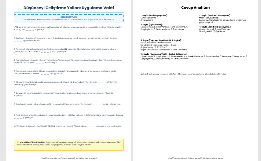 7.SINIF TÜRKÇE DÜŞÜNCEYİ GELİŞTİRME YOLLARI/ 2025-2026