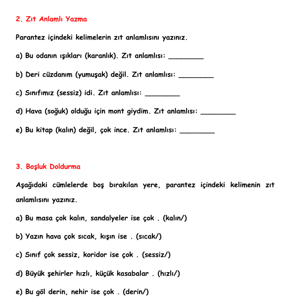ZIT ANLAMLI KELİMELER ÇALIŞMA KAĞIDI 1