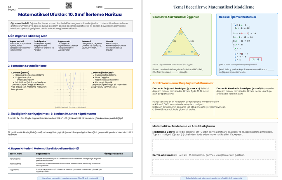 2025–2026 eğitim öğretim yılı 10. Sınıf Matematik dersi, Millî Eğitim Bakanlığı tarafından uygulanan Türkiye Yüzyılı Maarif Modeli doğrultusunda; kavramsal derinlik, matematiksel modelleme ve akıl yürütme becerileri esas alınarak yapılandırılmıştır.