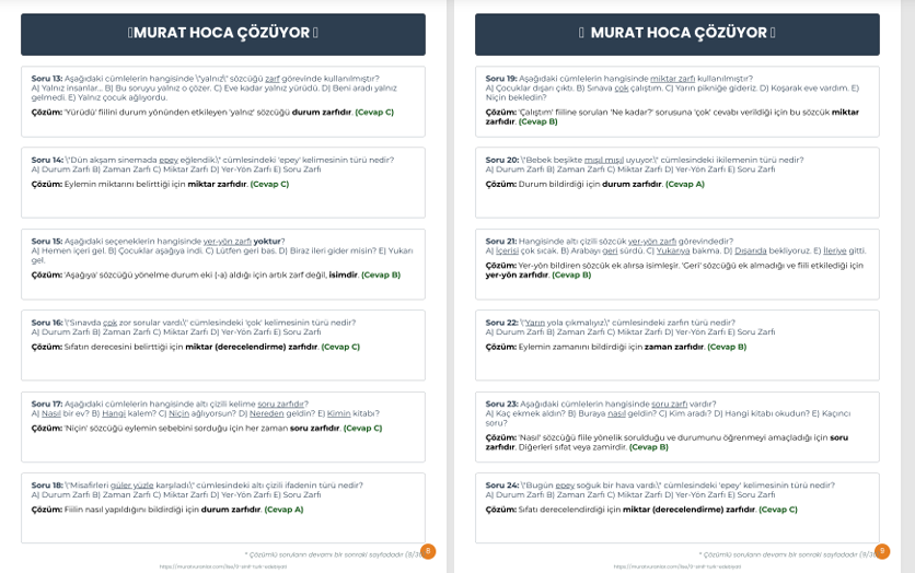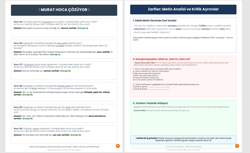 •Murat Hoca "Altın Notlar": Sınavlarda en çok karıştırılan noktaları, "can kurtaran" taktikler ve akılda kalıcı ipuçlarıyla (Sıfat-Zarf ayrımı gibi) netleştiriyoruz.