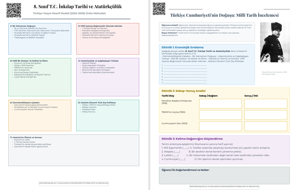 2025–2026 5. Sınıf Sosyal Bilgiler dersi, Millî Eğitim Bakanlığı tarafından yayımlanan Türkiye Yüzyılı Maarif Modeli doğrultusunda; bilgi + beceri + değer bütünlüğü esas alınarak yapılandırılmıştır. Aşağıda öğrenme alanlarına göre kazanımlar sade ve düzenli şekilde verilmiştir: