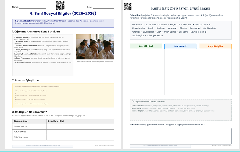 6. SINIF SOSYAL BİLGİLER KONULARI/2025/2026
