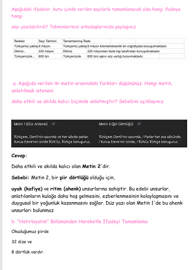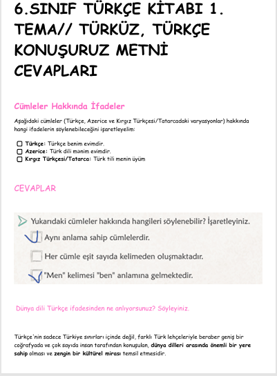 6.SINIF TÜRKÇE KİTABI 1. TEMA// TÜRKÜZ, TÜRKÇE KONUŞURUZ METNİ CEVAPLARI