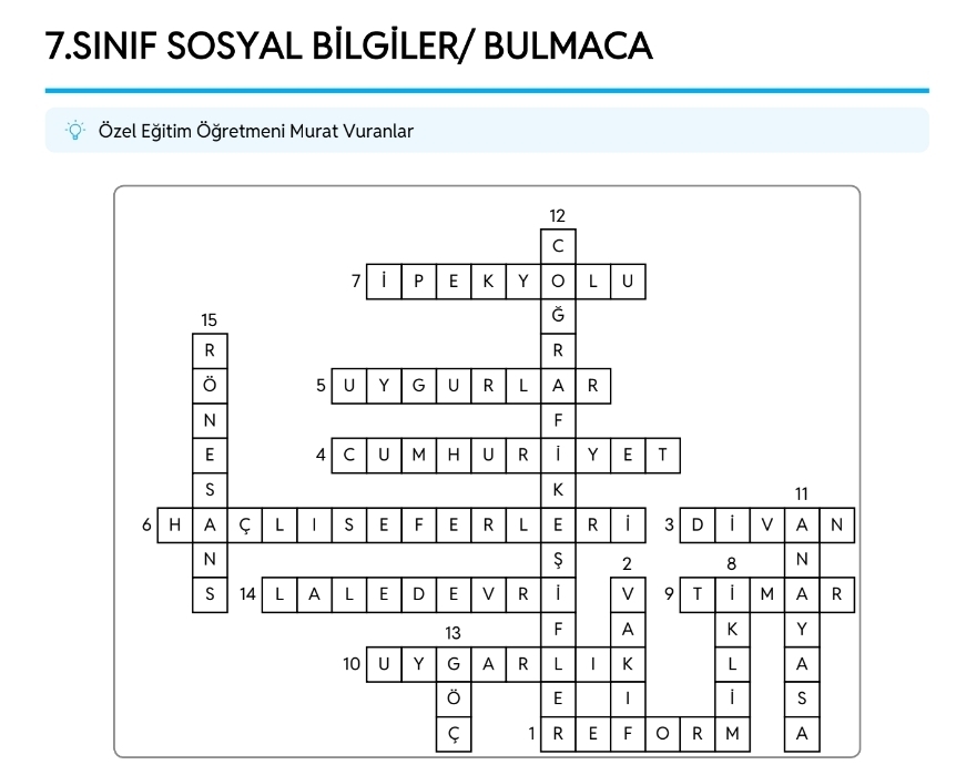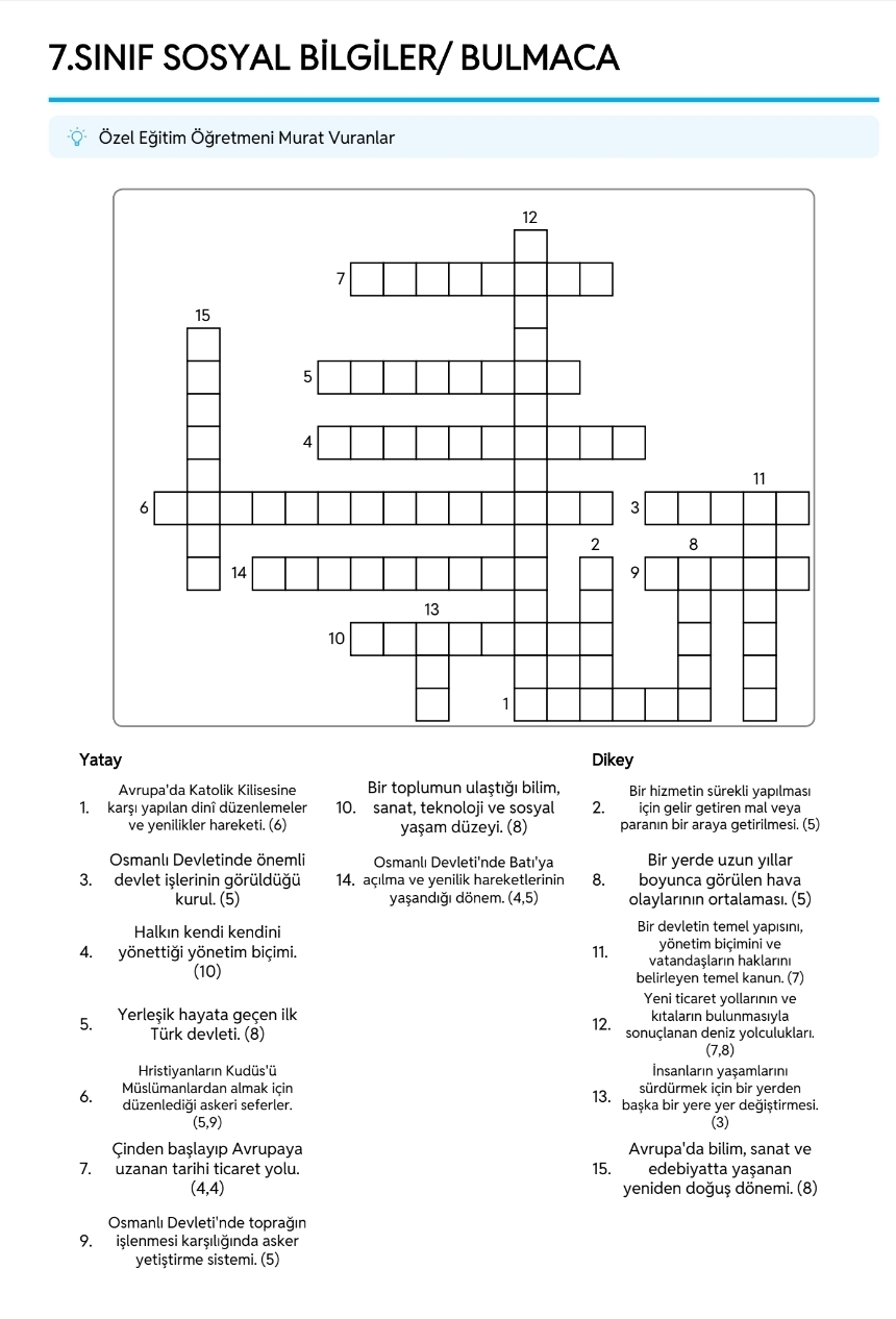 7.SINIF SOSYAL BİLGİLER /BULMACA