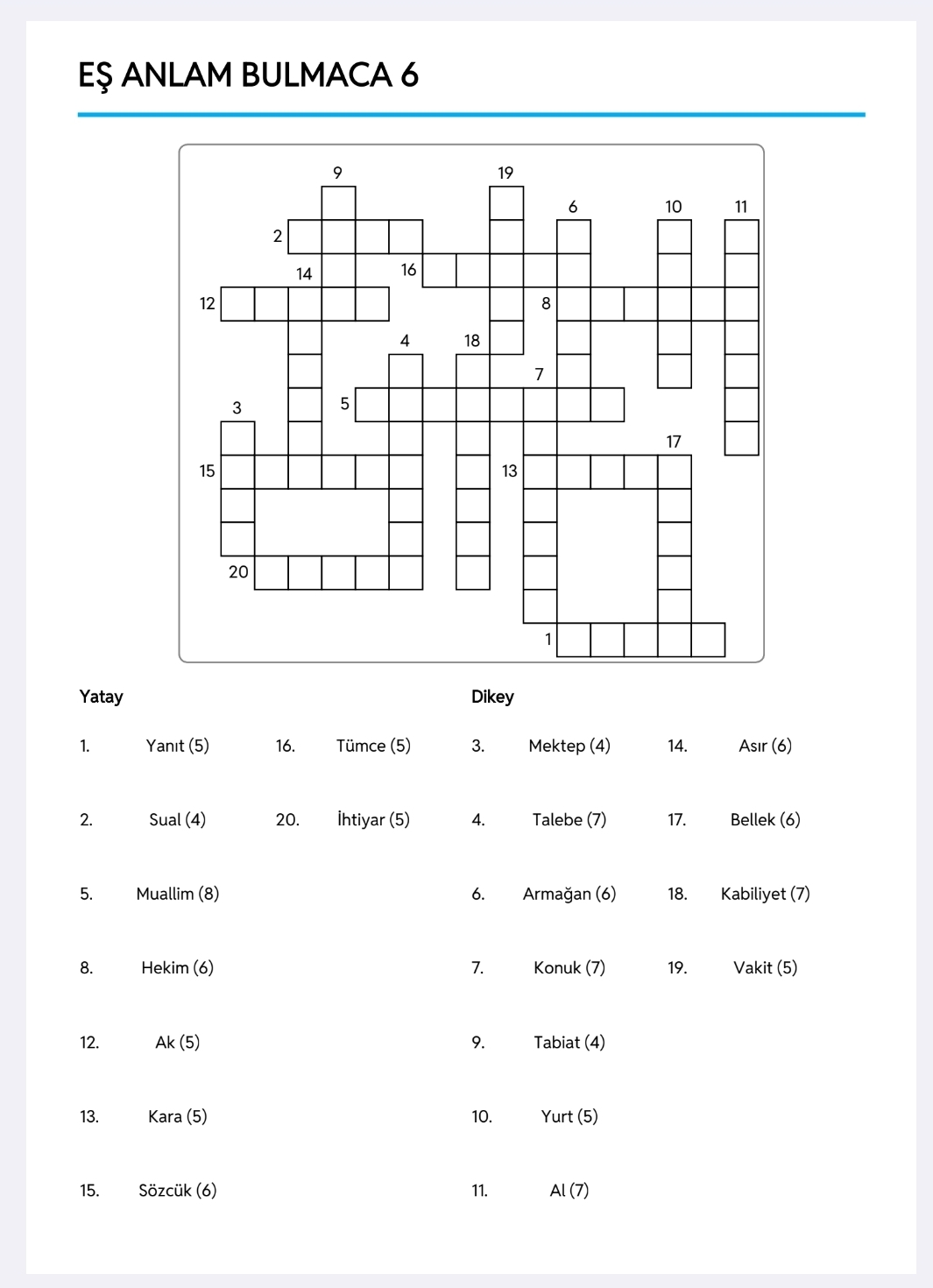 EŞ ANLAM BULMACA/6