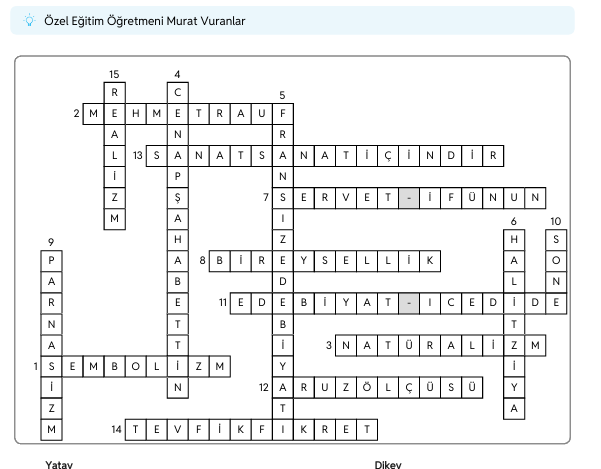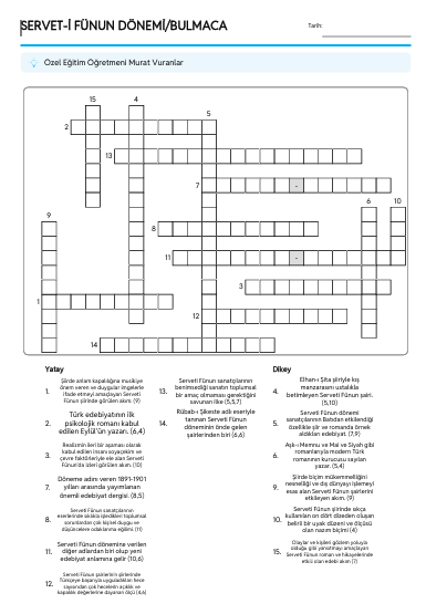 SERVET -İ FÜNUN DÖNEMİ/BULMACA