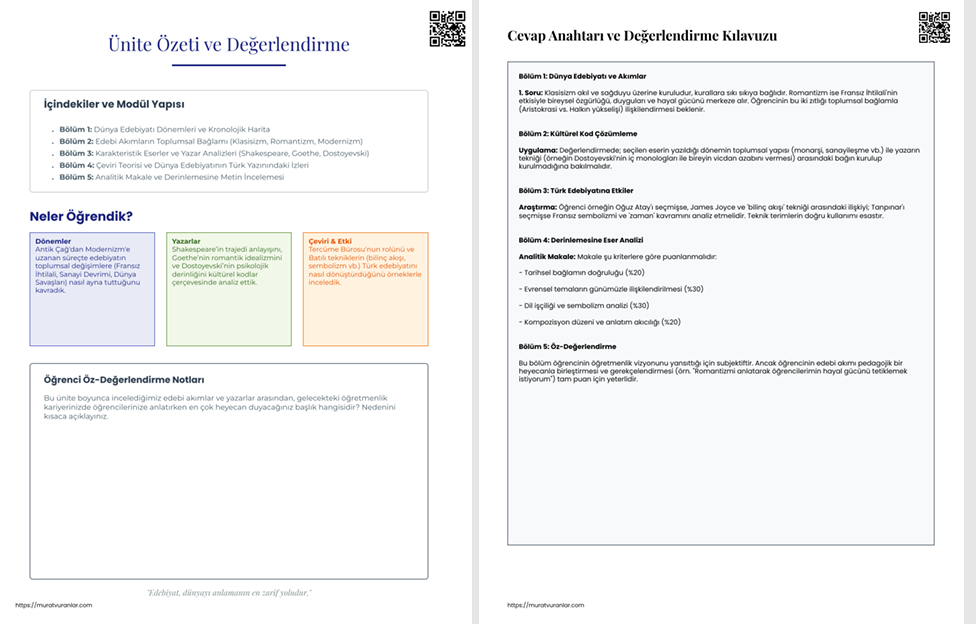 EDEBİYAT ÖĞRETMENLİĞİ 4. SINIF ÖĞRENCİLERİ İÇİN/DÜNYA EDEBİYATI DERSİ ÇALIŞMA SAYFASI
