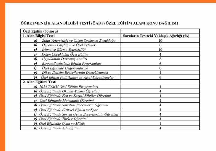 ÖĞRETMENLİK ALAN BİLGİSİ TESTİ (ÖABT) ÖZEL EĞİTİM ALANI KONU DAĞILIMI
